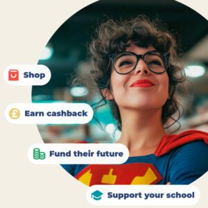 It’s quick to download, free to use and easy to set up. Every shop, however big or small, will earn cashback for your family and contribute to your child’s school and education.