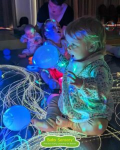 Each session takes you and your baby on a magical sensory journey filled with exciting and calming activities. In class you will experience: