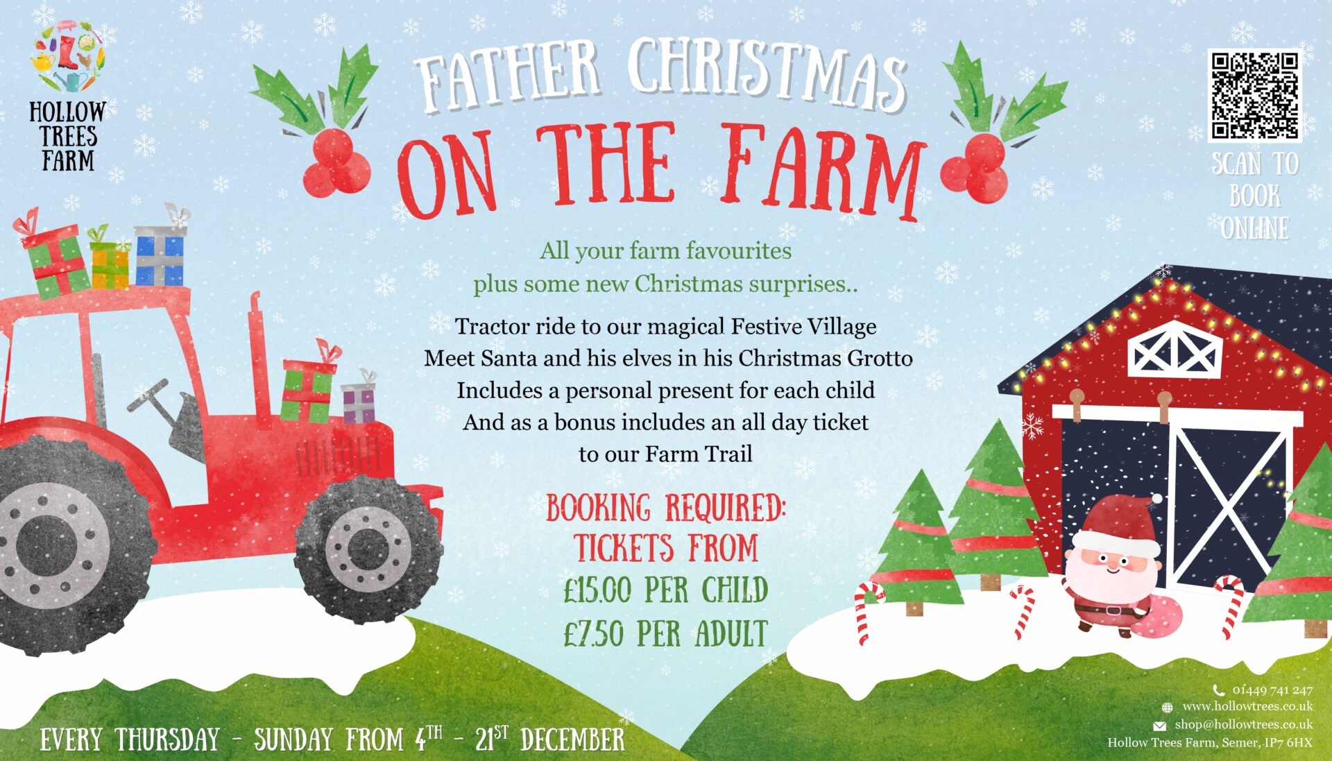Flying all the way from the North Pole, Santa is returning to Hollow Trees Farm, but this year he has found a new home on our Farm Trail!