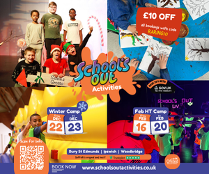 School’s Out Activities Quote RARING10 to receive £10 off. Winter holiday camps for children aged 4 – 16 years Selected dates available between from 8am – 6pm: Mon 22nd to 23rd December 20205 Bury St. Edmunds Ipswich Woodbridge Book here Date And Time 22 Dec 2025 to 23 Dec 2025 Location - Download Events ical Related Events Santa Specials at Mid Suffolk Light Railway Mythical Creatures at Colchester Castle! Cinderella Back to Events